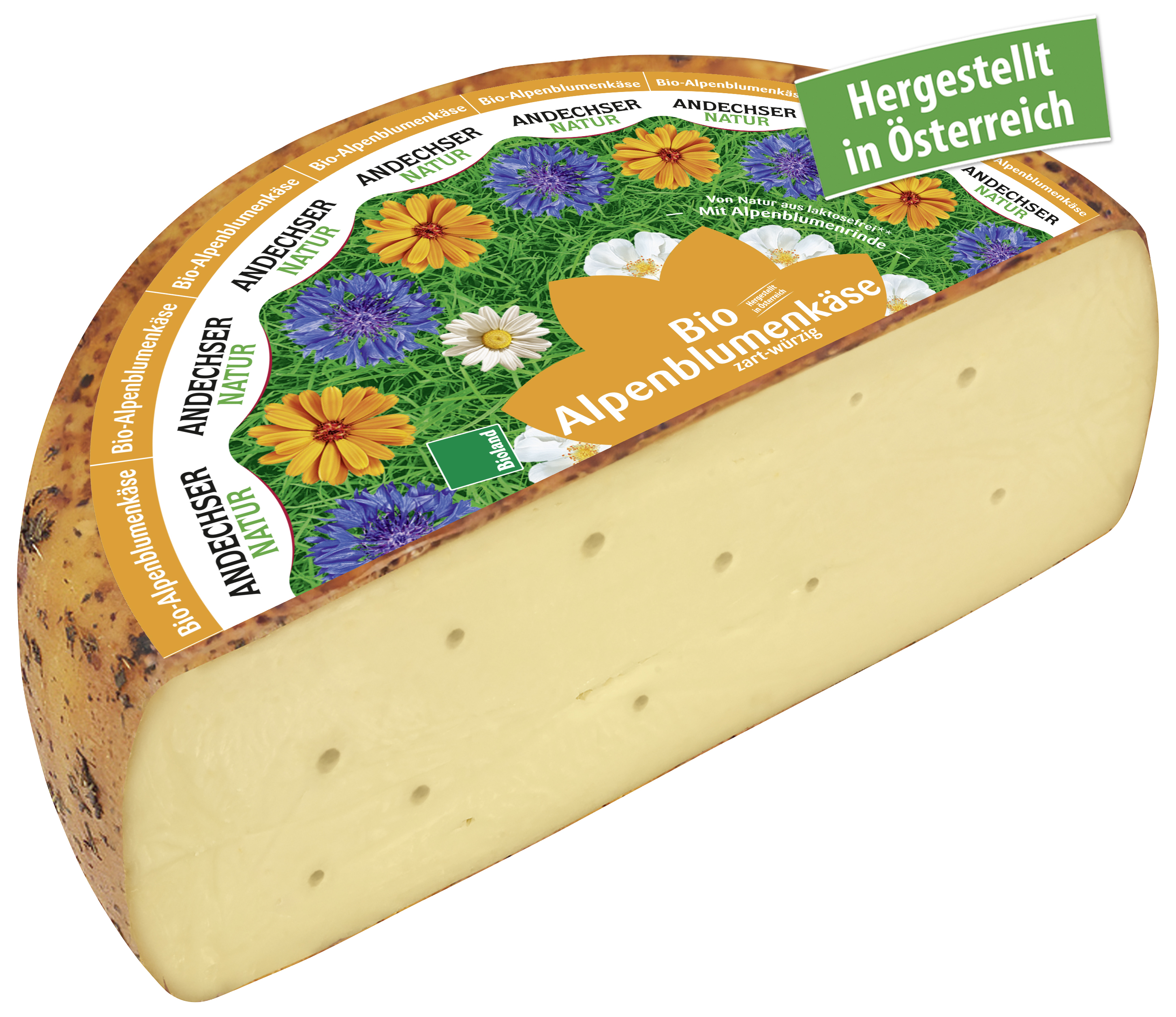 Nicht nur bei besten Klima- und Bodenbedingungen sondern auch ökologisch und ökonomisch sinnvoll produziert, wird der Bio-Alpenblumenkäse von der Berglandmilch eGen. Aus der Milch, der von den Alpen bis hinein nach Österreich angesiedelten Bio-Bauern der Andechser Molkerei Scheitz, werden hier mit meisterlicher Handwerkskunst außergewöhnliche Käsesorten gekäst.