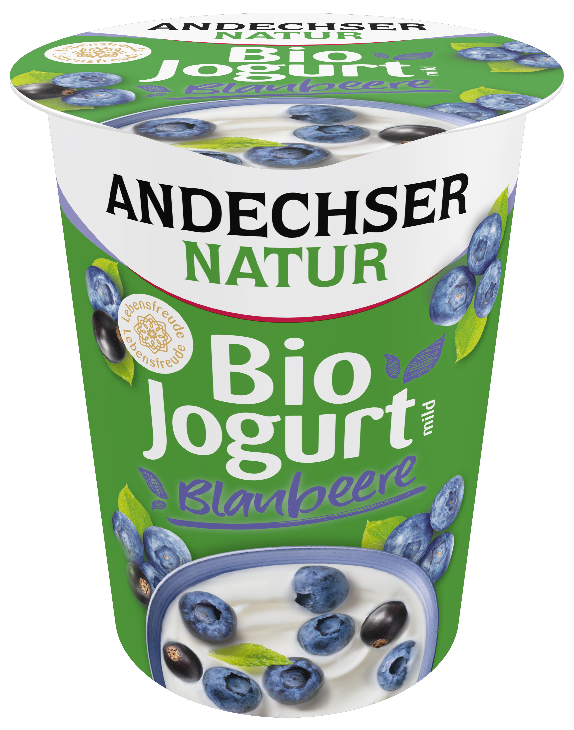 Tartish cassis and popular blueberry meets fresh natural yogurt. The result is the ANDECHSER NATUR mild organic yogurt blueberry with 3.8 % fat with a fruity, tartish taste of select Bioland ingredients. Traceable to the organic farmer at www.andechser-natur.de.