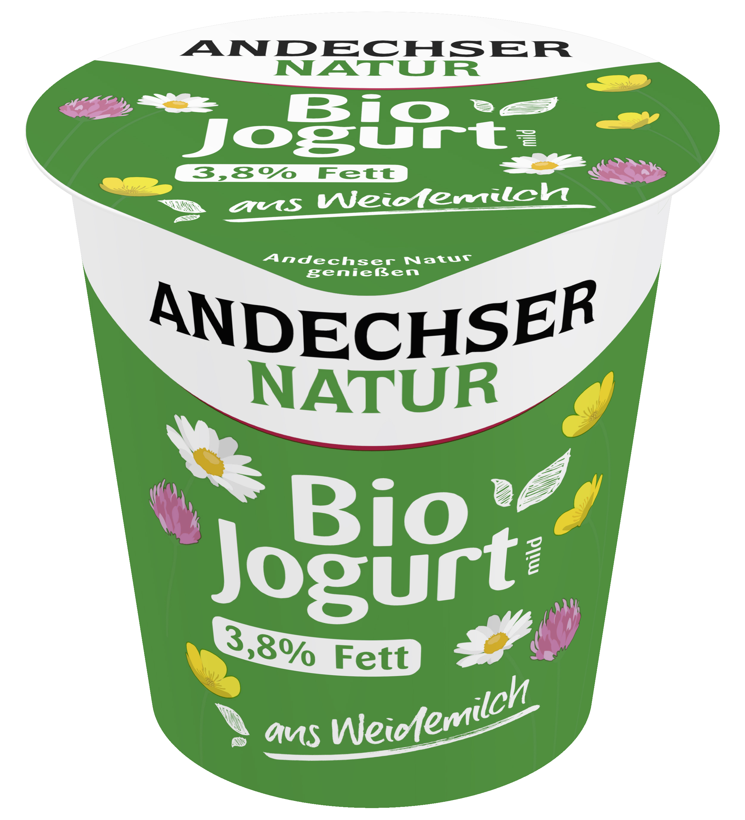 The ANDECHSER NATUR mild organic yogurt with 3.8 % fat – the natural, pure classic in Bioland quality. During fermentation the cultures primarily form L-(+) dextrorotary lactic acid and the unique tartish mild taste. Traceabilty to the organic farmer at www.andechser-natur.de