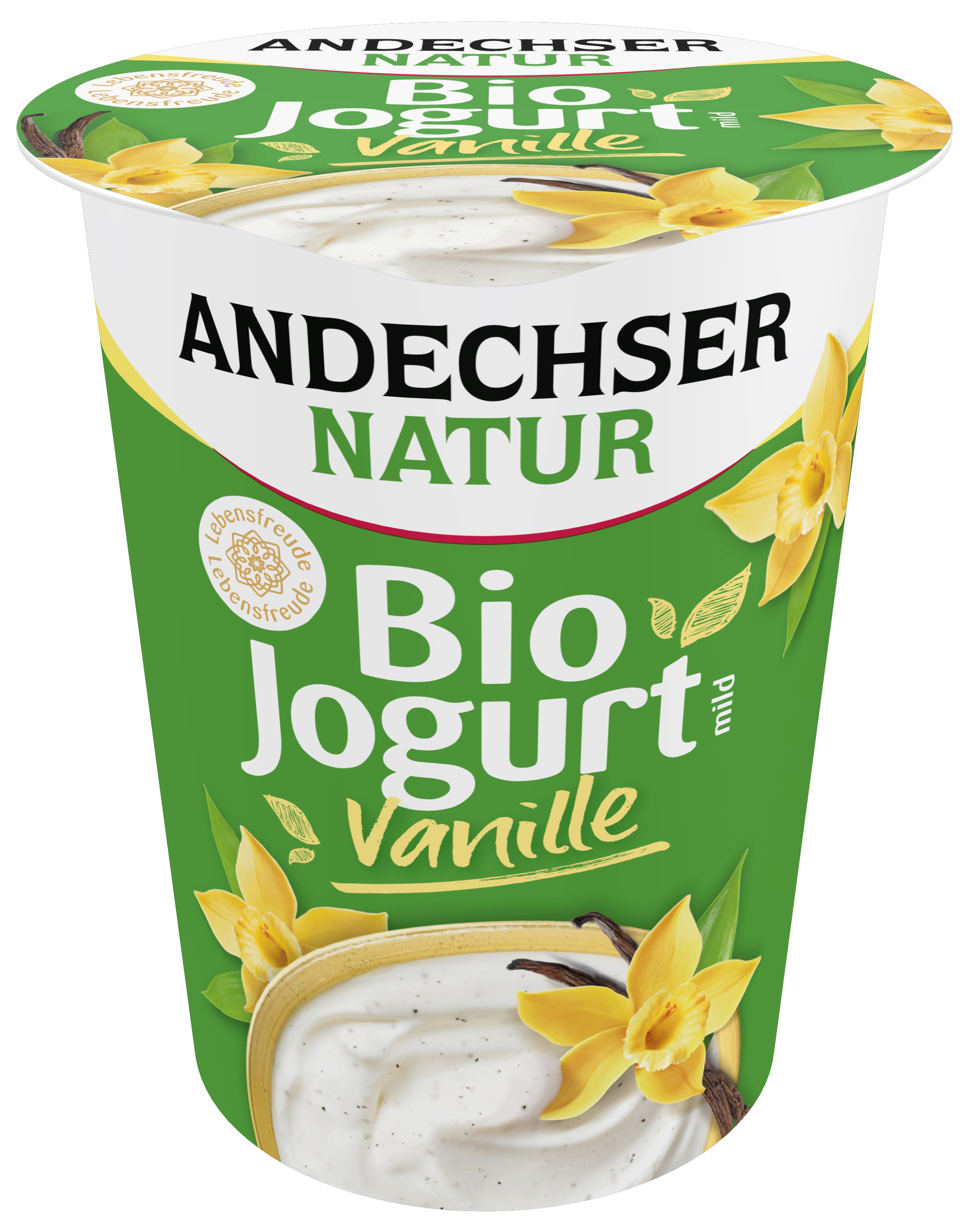 This is how natural vanilla yogurt has to be; With the popular ANDECHSER NATUR mild organic vanilla yogurt with 3.8 % fat fine, creamy and pure Bioland yogurt is combined with a delicate flavor of genuine bourbon vanilla. Traceable to the organic farmer at www.andechser-natur.de.